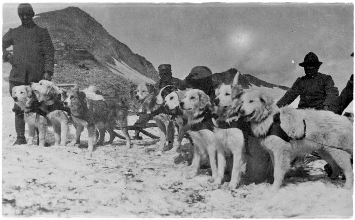 Und so kam eine stattliche Anzahl von Maremmanos direkt von den Schäfern Süd-Italiens rekrutiert und mach einer kurzen Ausbildung an die Front geschickt. Der starke und unabhängige Charakter der Maremmanos gab hier das Beste von sich: in zweier- oder dreier-Gespannen zogen sie kleine Karren oder Schlitten voll mit Nahrungsmitteln und Munition, und sicherten sich so die unendliche Dankbarkeit der Soldaten. Vom eisigen Wind und Schnee gepeitscht, von den Sonnen Spiegelungen geblendet, zogen sie entlang der schmalen Pfade, nur auf ihre wertvoll Fracht bedacht. Niemals ungeduldig oder müde, mit der Disziplin der echten Soldaten, fast als wäre ihnen bewusst, dass dass Leben der Jungs in den Schützengraben von ihnen abhing.