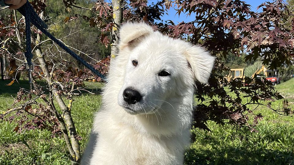 Maremmano-Abruzzese-Welpe mit rustikaler Eleganz und stolzem Wesen