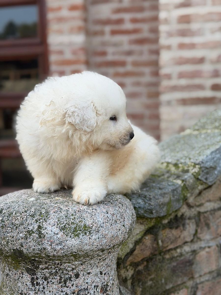 Talento wächst ruhig auf, umgeben von mütterlicher Fürsorge und der täglichen Aufmerksamkeit unserer Zuchtstätte. Es ist noch zu früh, um zu wissen, ob seine Zukunft die eines unermüdlichen Wachhundes oder eines zuverlässigen und stolzen Begleiters sein wird, aber eines ist sicher: Sein Name und sein Blut tragen bereits alle Voraussetzungen eines echten Abruzzen-Maremmenhirtenhundes.