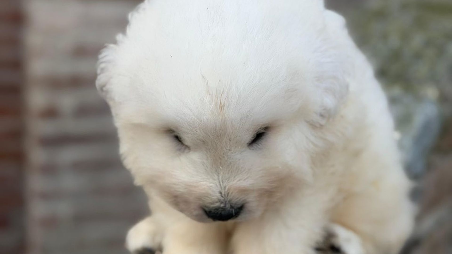 Sein weißes, weiches Fell beginnt bereits, die typische Konsistenz zukünftiger Erwachsener zu zeigen; sein Blick ist sanft, aber wachsam, mit der Intensität, die an seinen Vater Eduardo erinnert. Von seiner Mutter Cult scheint er hingegen die Gelassenheit und die natürliche Eleganz in seinen Bewegungen geerbt zu haben.