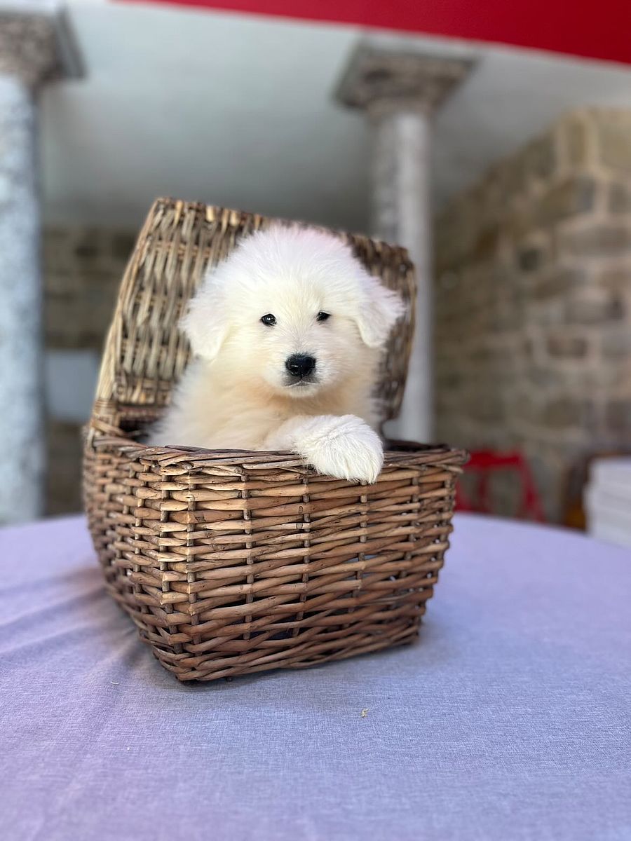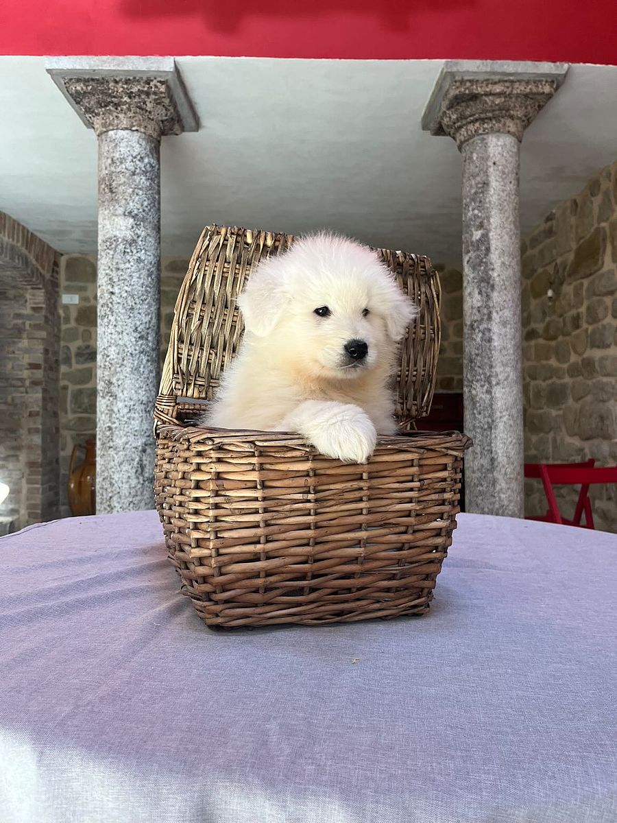 Filumena ist eine junge Maremmen-Schäferhündin mit einem bedeutungsvollen Namen. Inspiriert von der berühmten Komödie „Filumena Marturano“ von Eduardo De Filippo, von dem sie sowohl symbolisch als auch buchstäblich abstammt – als Tochter unseres Maremmen-Schäferhundes Eduardo –, verkörpert dieser Welpe perfekt den starken und authentischen Charakter ihrer Abstammung.