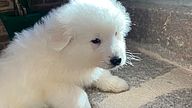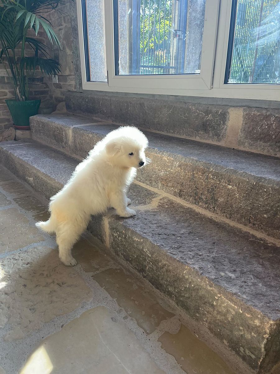 Unternehmungslustiger Maremmano-Abruzzese-Schäferhundwelpe